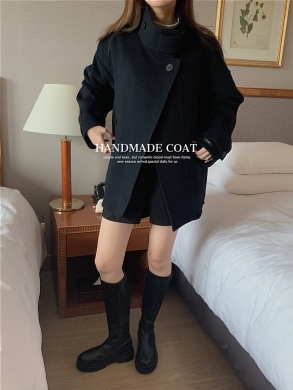 NT$ 5540如果你想投資一件外面很難撞衫的手工大衣那我真的很推薦你這件!!!因為一開始就是我這個外套控想要自己買來穿的所以放快閃店只是我要買它的藉口:)這件的版型真的很厲害,而且細節很多·2種方法可以穿它,穿起來也是兩種不同風格·寬鬆可以塞厚衣服,但是是繭形版型,寬鬆但不會顯臃腫·當斗篷穿的時候,下擺會有一個開岔,側面也會有前短後長修身的效果·雙層羊毛100%羊毛,保暖效果更好·袖口有扣子可以調節袖口的寬度