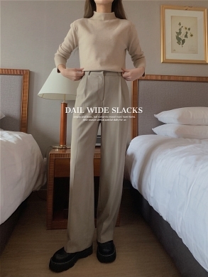 NT$ 1380這次的色系是走一個很溫柔的木質調色我自己覺得算是一件好搭的淺色系很適合冬天搭配素面的毛衣又比較不容易看膩因為我真的很喜歡這個色所以才特別修改了好幾次他的版型·小腰最難買寬褲了,但這件小腰基本上都可以穿,因為有到xs·雖然看起來不寬,但我穿起來還有5指的鬆度,小全穿這件假跨寬直接不見·檔超長,但他也是屬於一件看得出大腿纖細感的寬褲·我最喜歡的單打摺,能修飾腿形又不會澎起來·雖然是寬褲但是,臀形跟直筒褲一樣好看💗