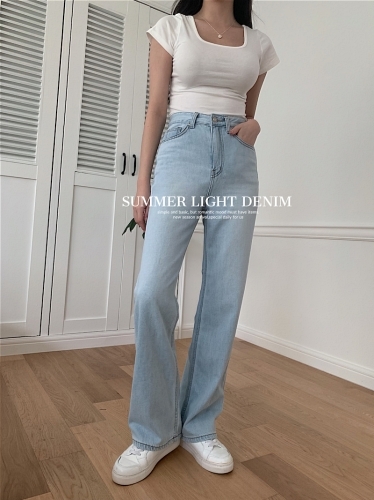 “它也是最看不出來它是薄款的材質的牛仔寬褲”